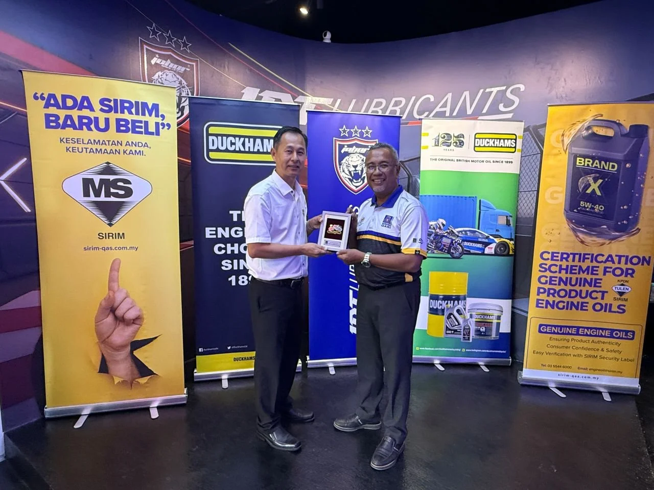 Duckhams Oils have been awarded SIRIM Product Certification, confirming that Duckhams Lubricants meet strict safety, quality and regulatory standards. A SIRIM delegation led by Senior General Manager of SIRIM Marketing and Customer Experience, Mr Aminudin Bin Abd Aziz, presented the certificate to Johor Darul Ta’zim FC Chief Executive Officer and Technical Director Alistair Edwards.