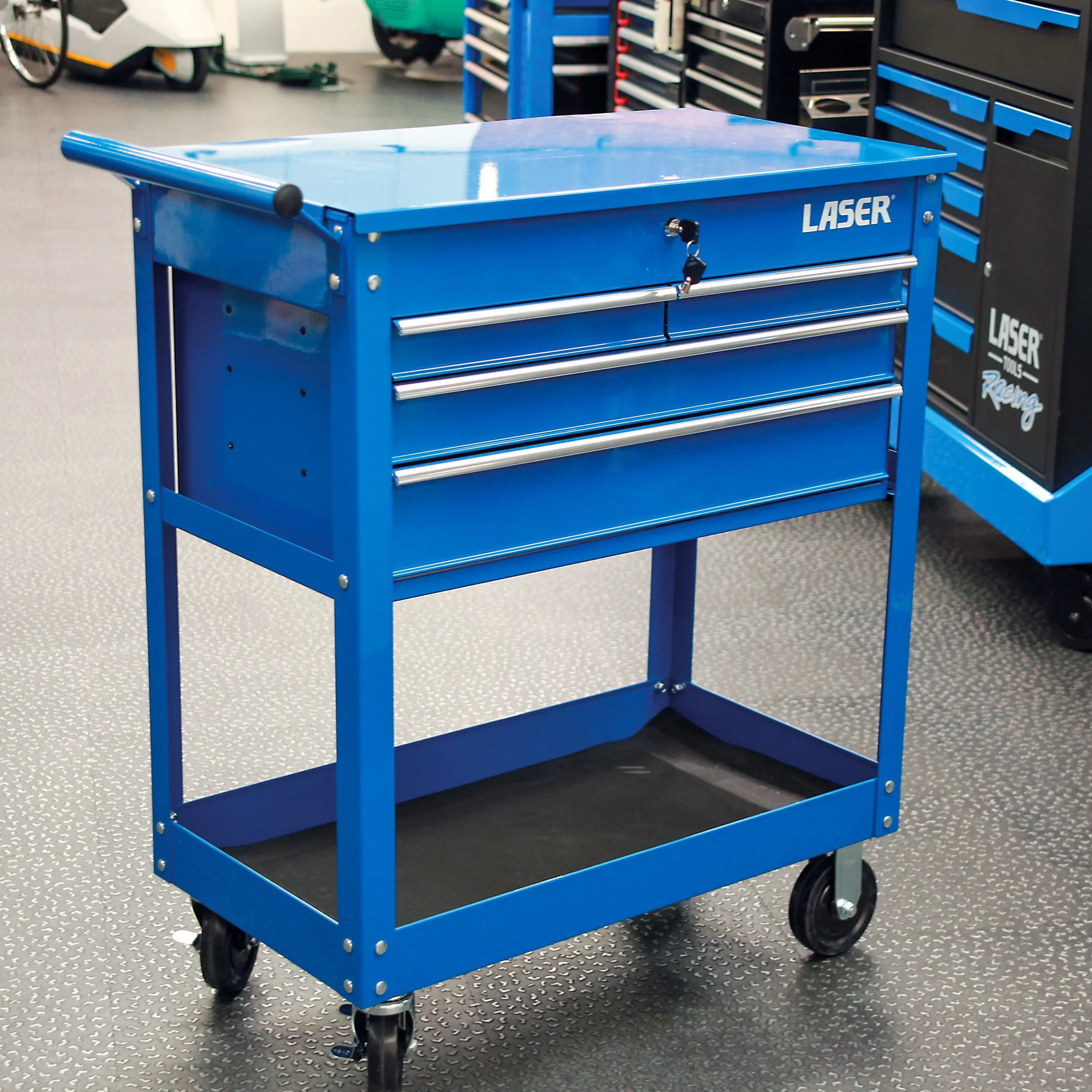 New from Laser Tools (part number 9026), this 4-Drawer Workshop Tool Trolley is purpose-built for technicians who need reliable, mobile storage to streamline workflow around the service bay.