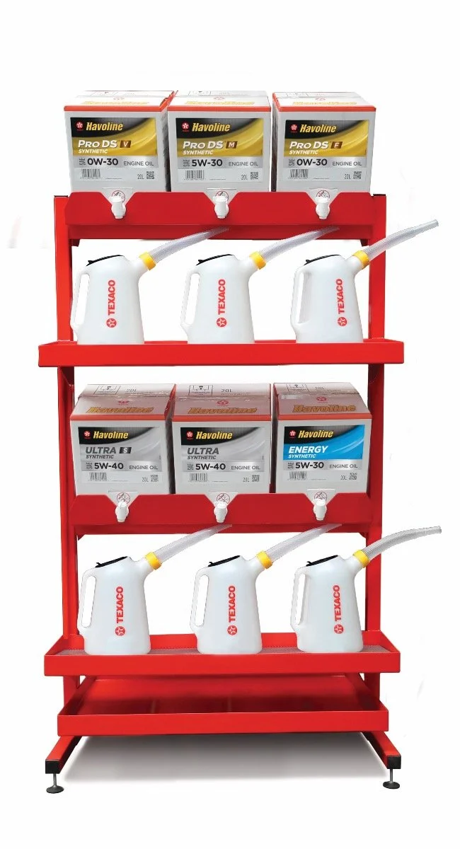 The Havoline PitPack is an efficient storage, display and dispensing system for engine oils that provides product integrity from the box to the customer’s engine.
